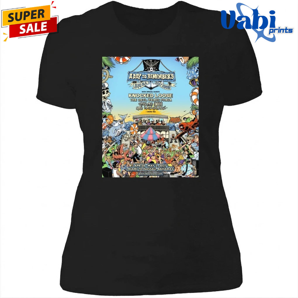 Get ready for an unforgettable experience at the A Day To Remember Big Ole Boat Show 2026! This exclusive event poster features an electrifying lineup, including the powerhouse bands Knocked Loose and The Devil Wears Prada. Mark your calendar for an epic celebration from April 28 to May 2, 2027. Our limited-edition shirt combines bold graphics with premium comfort, making it a must-have for every fan. Don’t miss out on the ultimate fusion of music and maritime culture—grab your poster and shirt today!