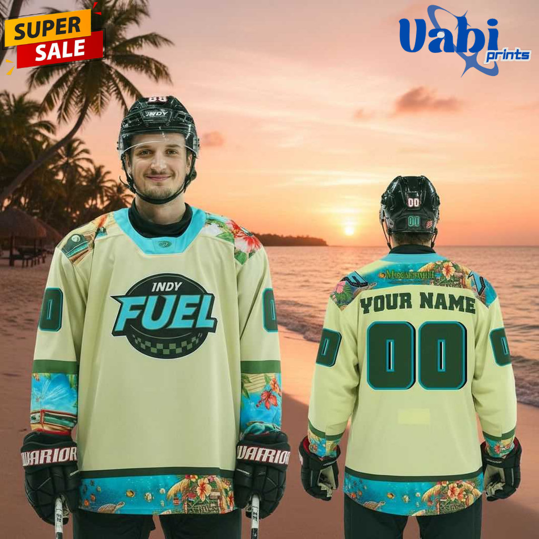 Escape to paradise every time you wear it — grab your personalized Indy Fuel Margaritaville Night 2026 Hockey Jersey today and join the Fuel faithful in the ultimate island-style hockey party!